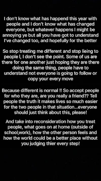 It’s disgusting to have somebody emotionally or physically hurt\torment you everyday. They make you wonder if there’s any point in trying anymore and if you should try and fix it or just ignore it and get on with your life. This is difficult to comprehend as all you want to do is come to school see friends, learn and go home! But someone will find away to put you down or to be jealous over something stupid... especially when your young. It’s not a nice feeling at all!